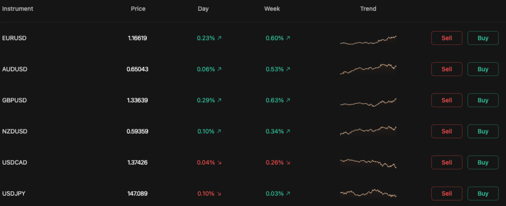 Chúng tôi cung cấp ngoại hối, kim loại quý, cổ phiếu, chỉ số, hàng hóa, crypto currencies.